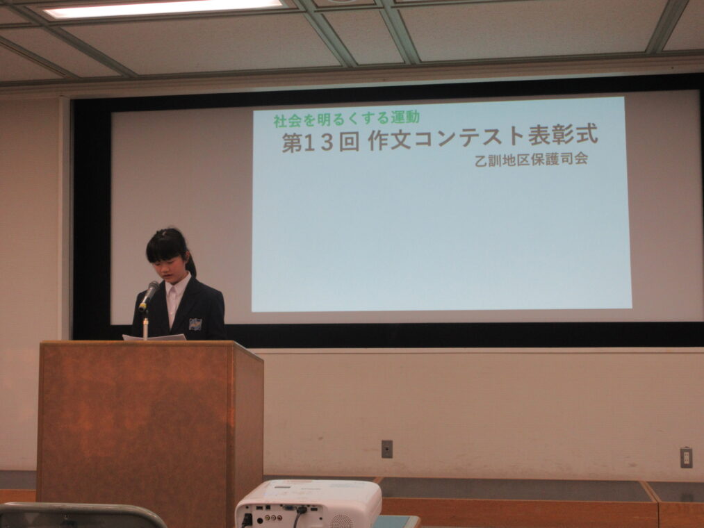 前嶋さんは 乙訓市町会長賞を受賞し、作品タイトルは「再犯者を減らすためには」です。おめでとうございます。