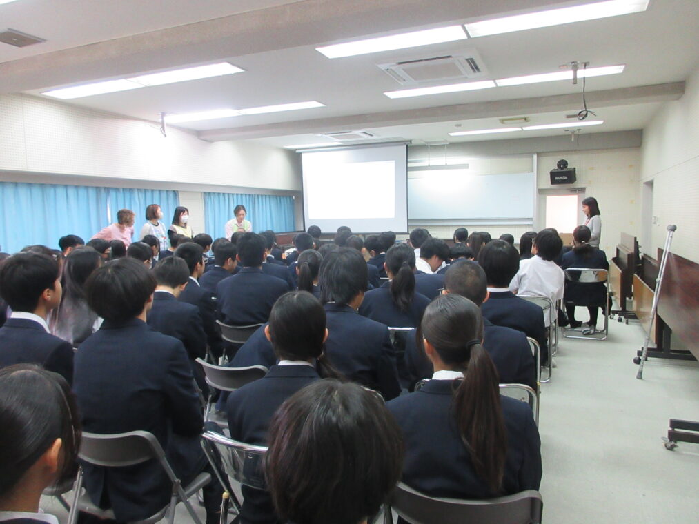 11月12日(水)、3年生は家庭科の授業で、株式会社せきゅりてぃー・ぶらんけっとから講師の先生4名をお迎えし、保育に関する特別講演を行いました。