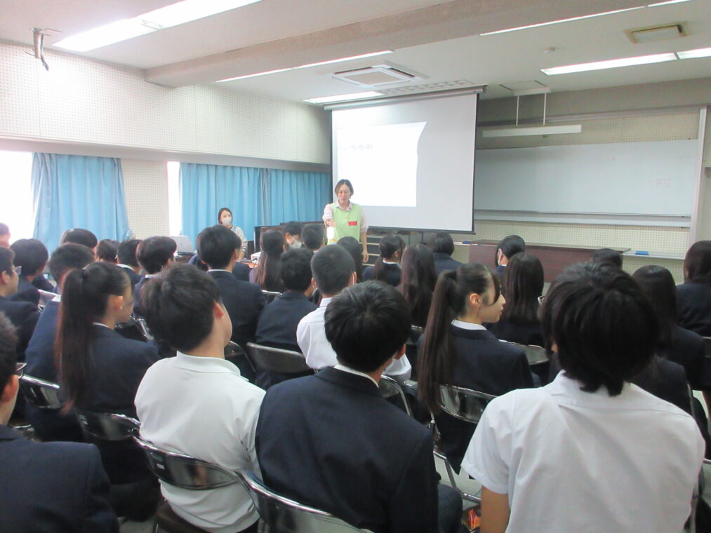 講師の先生方は映像を交えながら、幼児の見ている世界や保育園での園児の生活について、わかりやすく説明してくださいました。生徒たちは、実際の乳幼児と触れ合う体験もあり、保育の現場を身近に感じながら、興味深く話を聞いていました。今回の学びを通して、子どもや子育てへの関心を高めるだけでなく、命の尊さや子どもの成長を支える仕事への理解を深める貴重な時間となりました。次回は、14日(金)に保育に関する実習を行う予定です。