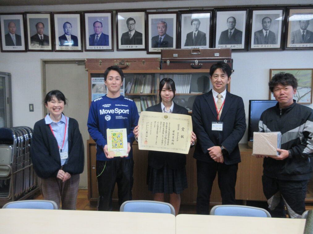 本日、校長室にて、表彰式を行いました。藤枝さん、おめでとうございます。