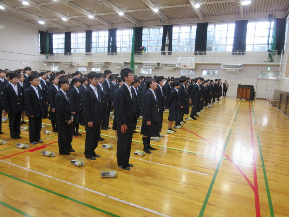 校長先生の式辞では、2学期の行事での三中生の頑張りをたたえるとともに、学年ごとにこれからの過ごし方についてメッセージがありました。