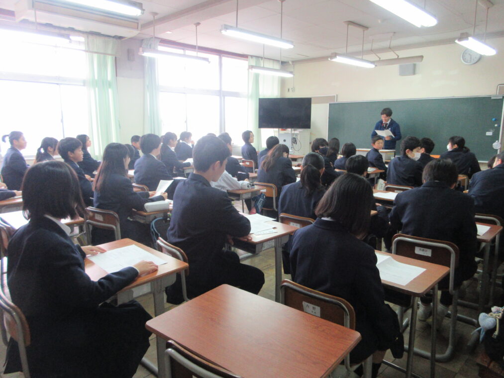 終業式の後には、2学期に部活動などで活躍した生徒の表彰が行われ、続いて旧生徒会本部から最後の挨拶がありました。最後に、生徒指導部より冬休みの過ごし方についてのお話がありました。