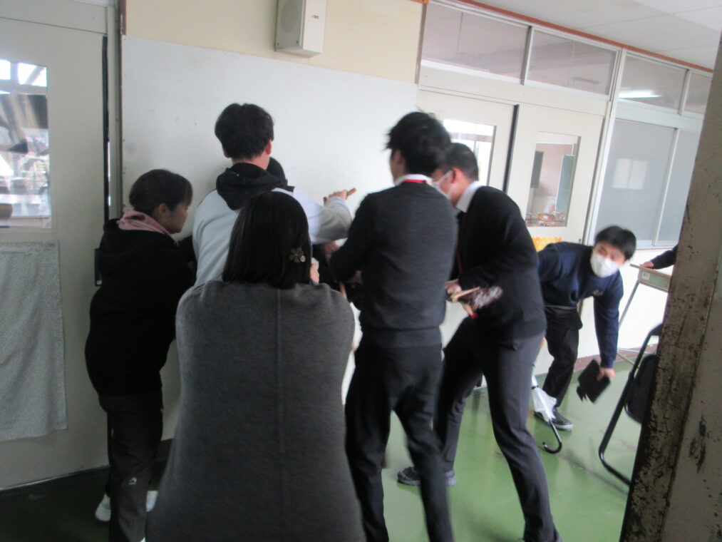 生徒たちは教員の指示をよく聞き、落ち着いて行動することができており、職員研修で学んだポイントを実際の動きとして確かめる大変有意義な機会となりました。
