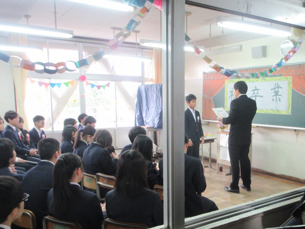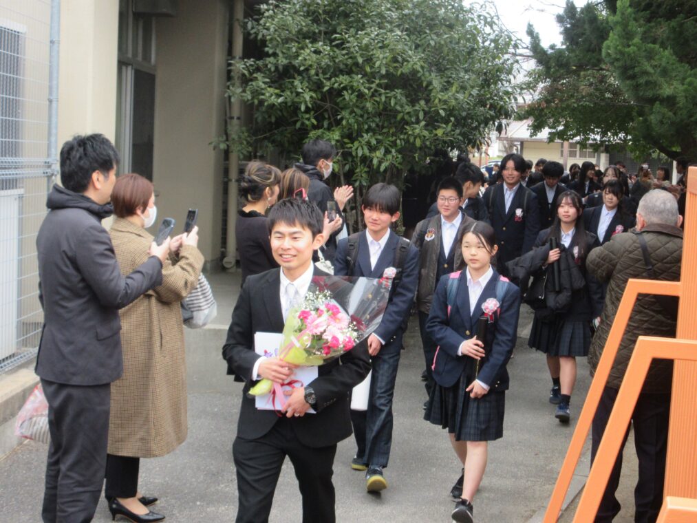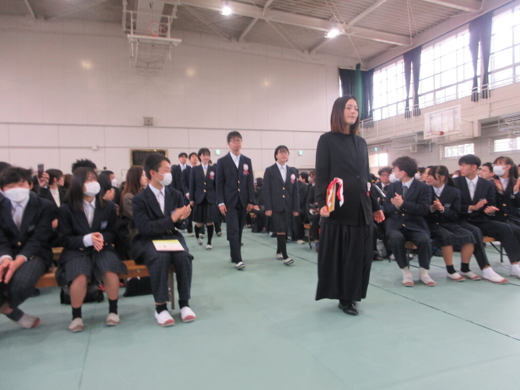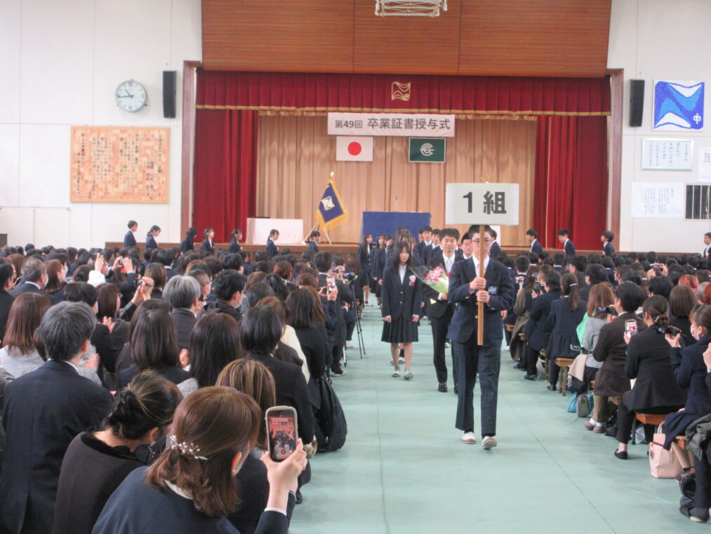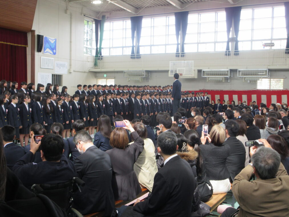 式は一つひとつの動作が丁寧に進められ、3年生は最後まで立派な姿を見せてくれました。式歌では、3年間の思いを胸に、力強くも優しさにあふれた歌声が会場いっぱいに響き渡り、多くの方の心を打ちました。