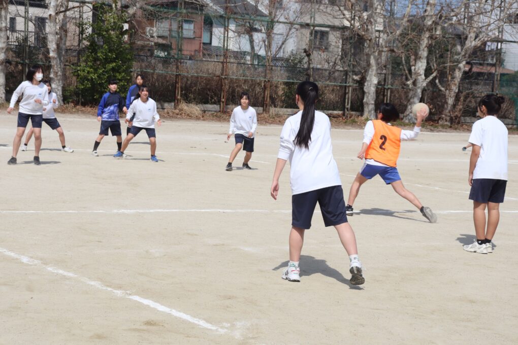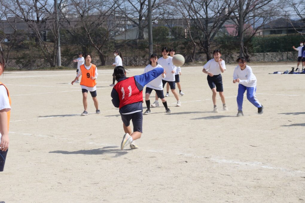 続く球技大会では、グラウンドで男女ともにドッジボールを実施しました。コートのあちこちで白熱した試合が繰り広げられ、仲間への声かけや励ましの言葉が自然と飛び交う、温かい雰囲気に包まれました。全員が本気で取り組み、最後まで元気いっぱいに楽しむ姿が印象的でした。