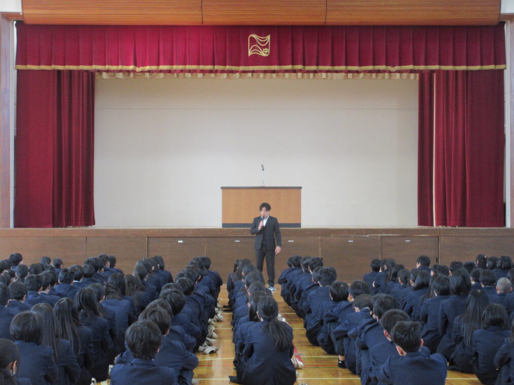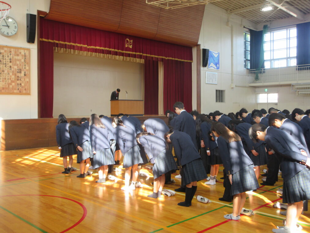 3月24日(火)、令和7年度修了式が行われました。修了式では、どの学年の皆さんも落ち着いた態度で臨み、校長先生をはじめとして、前に立った先生方の話をよく聞こうとする真剣な姿がとても印象的でした。一年間の締めくくりにふさわしい、静かで引き締まった雰囲気の式となりました。