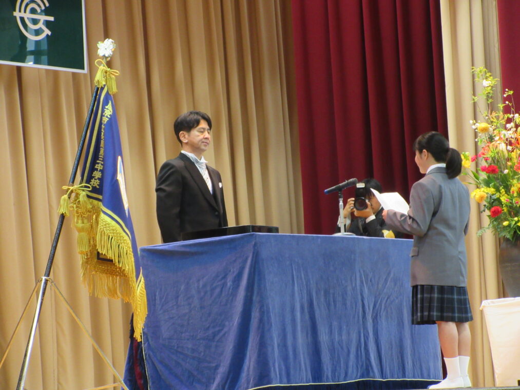 入学式では、正しい姿勢で話を真剣に聞き、元気よく返事をする姿が見られ、これから始まる中学校生活への大きな期待を感じることができました。