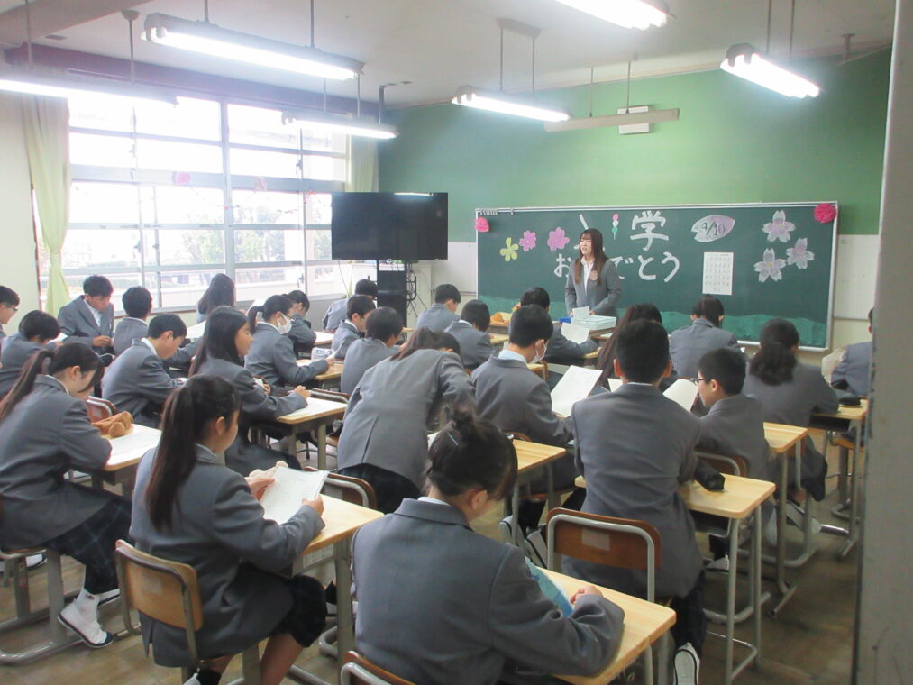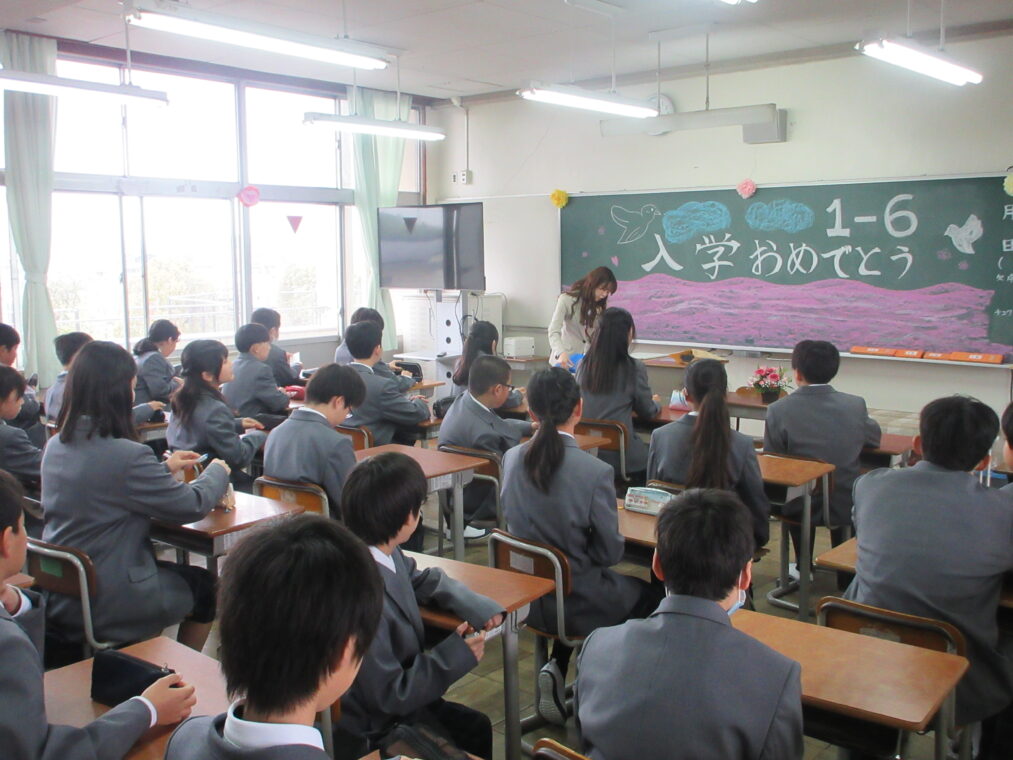 式後は各学級にて、新しい担任の先生や仲間たちとともに学級開きを行いました。来週から始まる本格的な中学校生活の一日一日を大切にし、実りある毎日を送ってほしいと願っています。