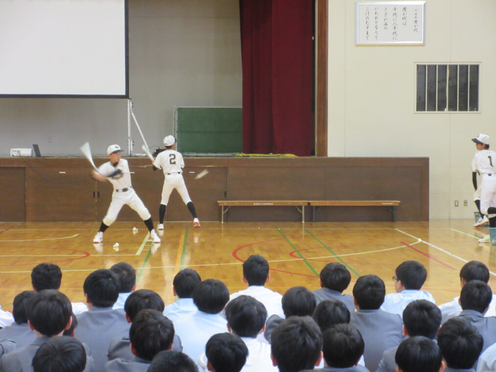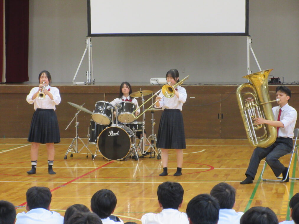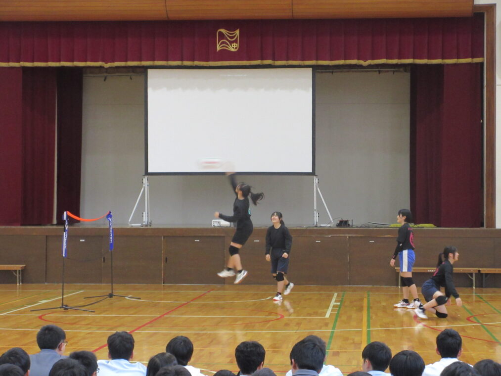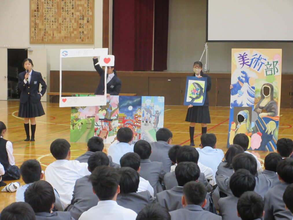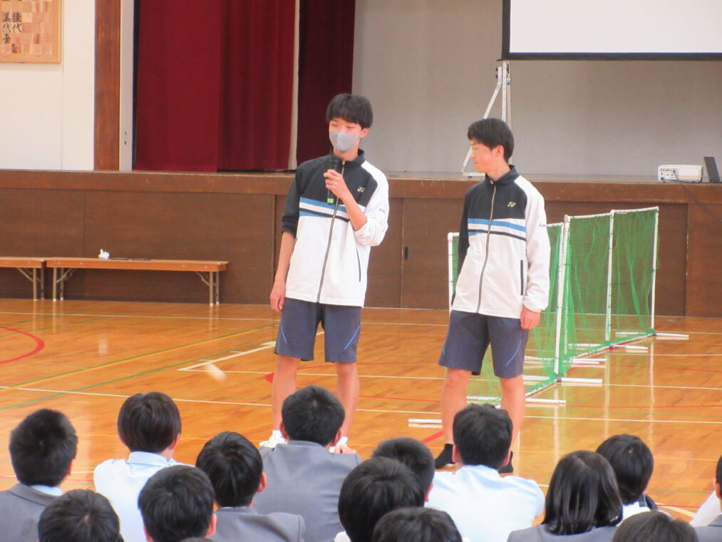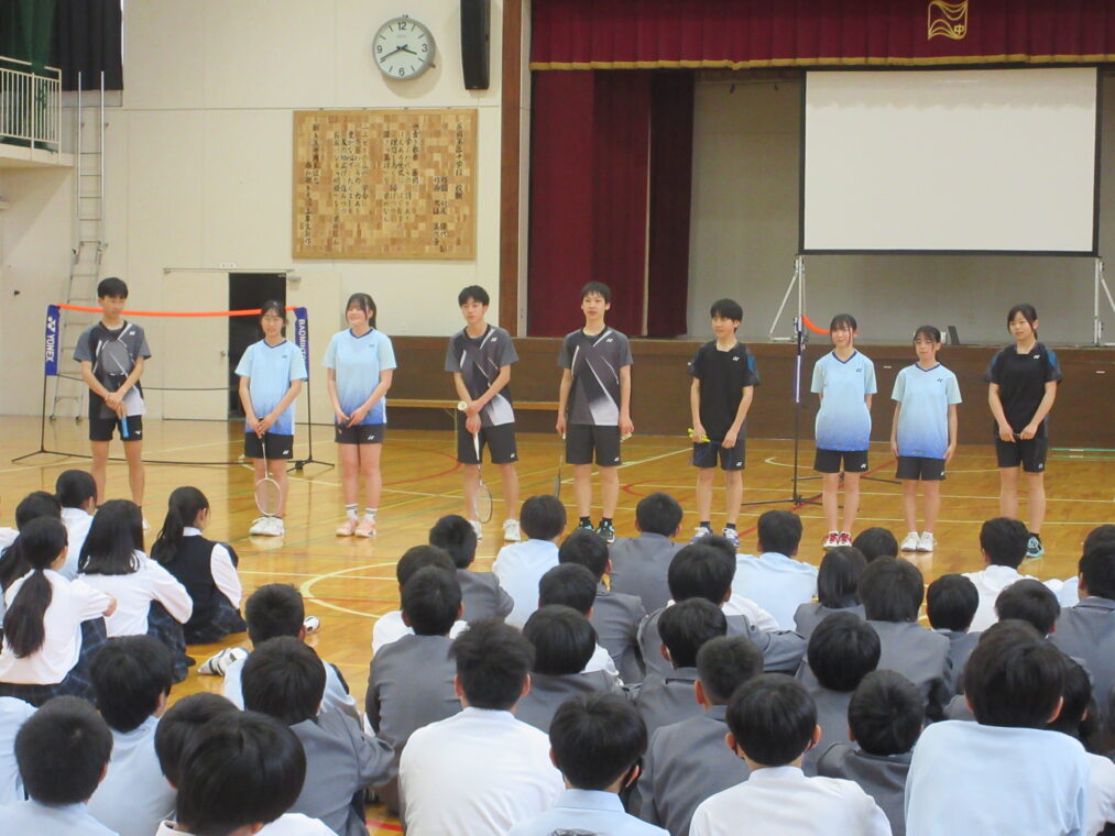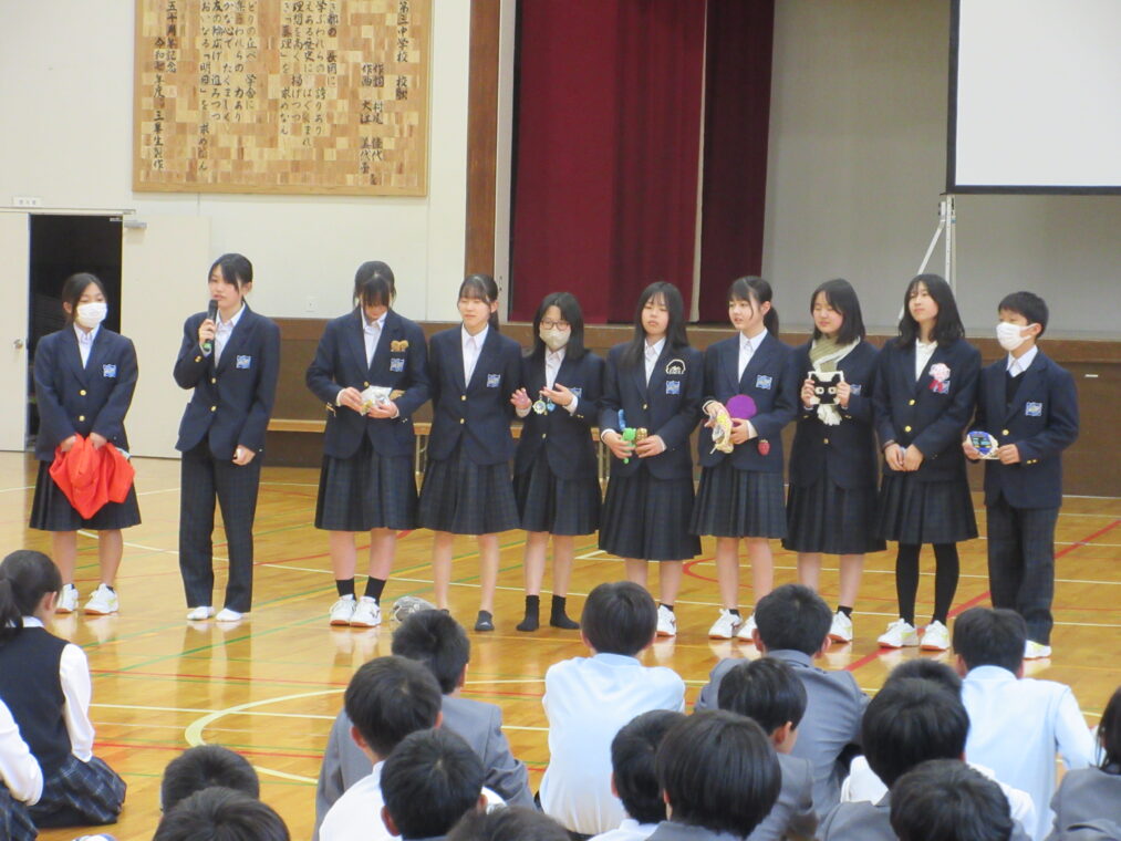 学校紹介の後は、部活動紹介が行われました。1年生にとっては、中学校で初めての部活動となります。すでに入部する部活動を決めている人もいれば、まだ悩んでいる人もいることと思います。本日の部活動見学や、明日から始まる部活動体験を上手に活用し、自分に合った部活動を探してみてください。