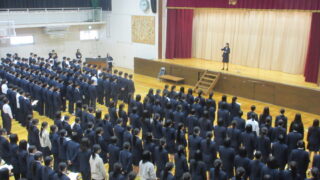 11月26日(水)、創立50周年記念式典で歌う合唱曲「いつまでも」の全体練習を、6時間目に体育館で行いました。 最初は声の出し方に戸惑い、遠慮がちな様子も見られましたが、練習を重ねるうちに少しずつ自信を持って歌えるようになり、体育館に響...