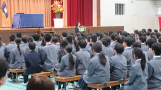 1年生は校舎見学を行い、長三中の校舎内を歩きながら、一つ一つの場所について担任の先生から...