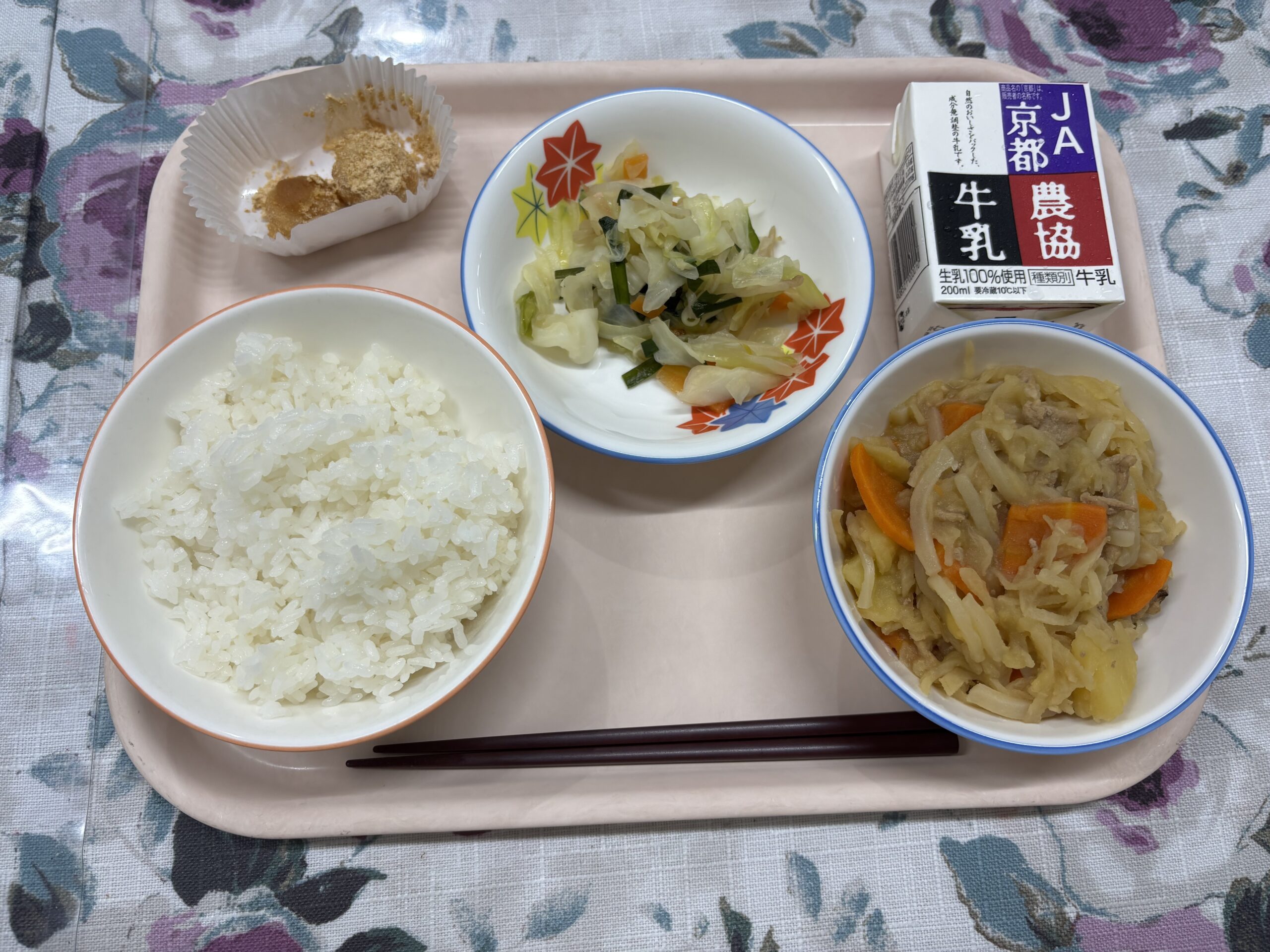 給食ではきなこをまぶしたお月見だんごが登場しました。