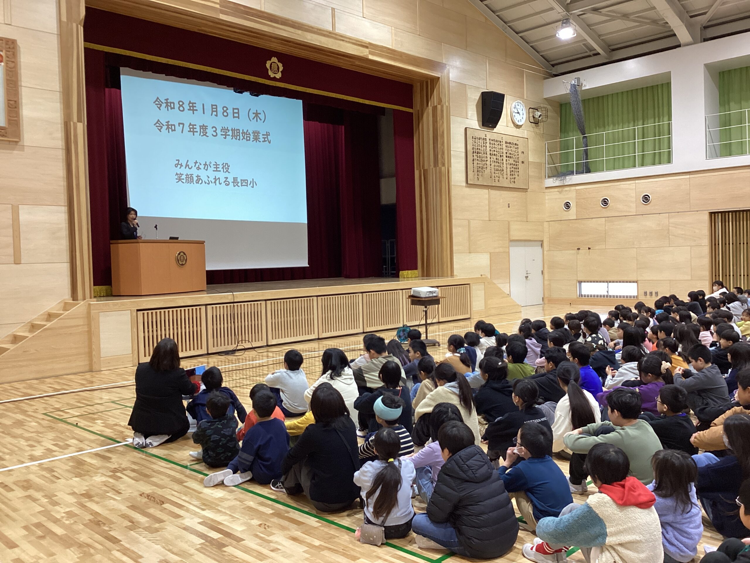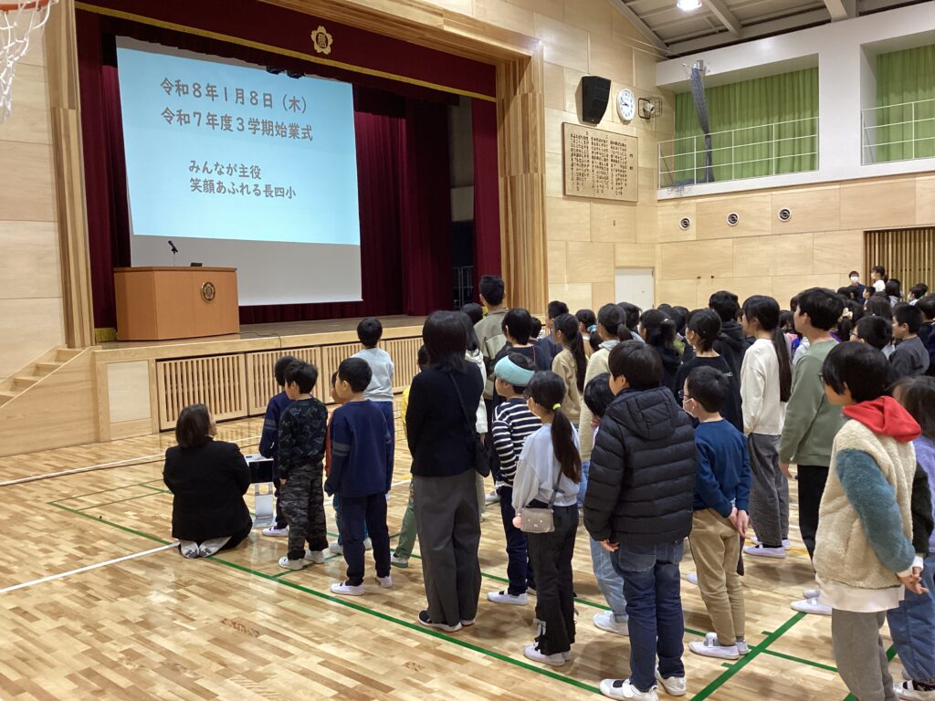 校長先生の「感謝する3学期」「当たり前をあたりまえにできる3学期」のお話に、反応をしながらしっかり聞こうとする子どもたちの姿が見られました。教室でもお正月のことを話したり、今学期の目標を伝えたり仲間との交流を楽しんでいる様子でした。