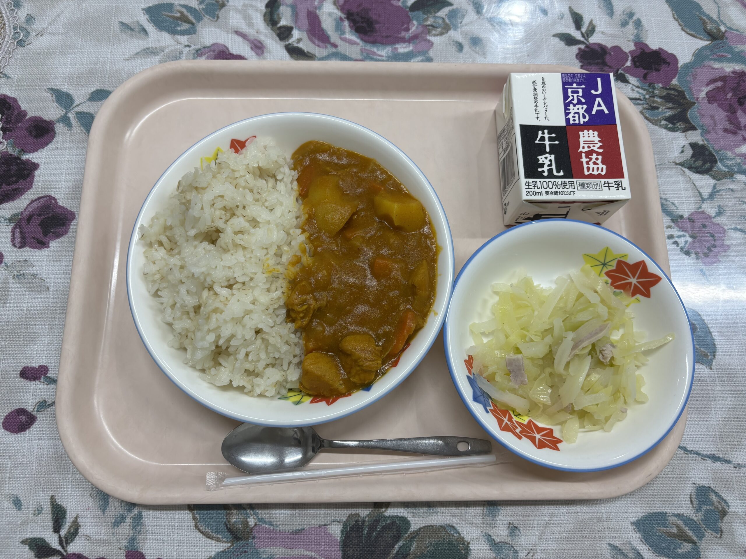 今日の献立は、本の中でも調理員さんが作っていたカレーライスと、地元産の新鮮な大根を使った