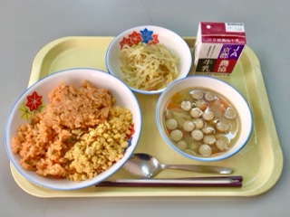 学校日誌 今日の給食(スクランブルオムライス)