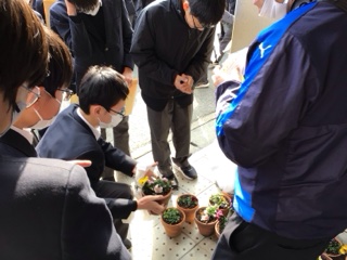 2年生では、先日から実施している総合的な学習の時間の取り組みの一環として、各事業所や地域の皆さまに花をお届けする活動を行います。