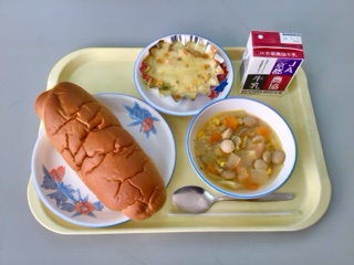 学校日誌 今日の給食(マカロニグラタン)