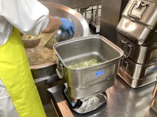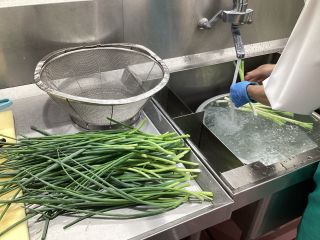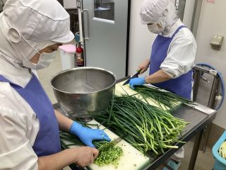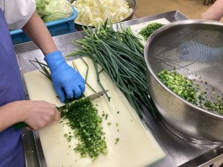 給食委員さんから受け取ったねぎは、柔らかく、繊細だったので大事に丁寧に洗って、細かく小口切りにしました。