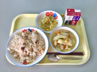 今日の給食(たこピラフ)