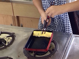 わかたけの家庭科の授業で、卵焼きの調理実習を行いました。