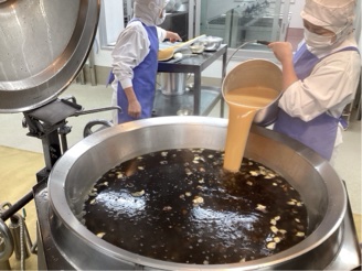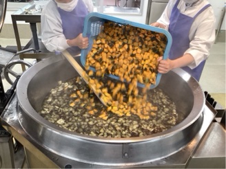味つけは、みそとしょうゆだけで出汁を使わないのが特徴ですが、給食では、私たちが食べやすいように、削り節の出汁を使って作ったそうです。地域の郷土料理を味わっていただきましょう。