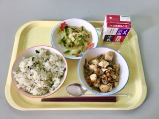 給食委員がお昼の放送で「豆腐」の魅力について話してくれました。ありがとう!