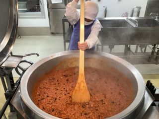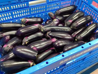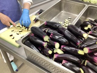 今日は、長岡京市の秋ナスを使ってパスタソースを作りました。皮が艶々していて、中はきめの細かいきれいなナスを届けていただきました。
