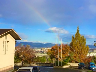 3年生 写真撮影 学校日誌 2025.11.19 雨が降ったり止んだりでしたので、雨上がりの虹が出ていました! 3年生たちは出願で使用する写真と卒業アルバムの写真を撮影していました。いよいよ卒業が迫ってきた感がありますね。