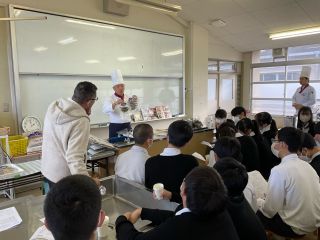 去る11月28日に2年生を対象とした和食体験授業を行いました。講師は辻学園調理製菓専門学校の阪本健一先生です。阪本先生は教授として日々日本料理を研究しておられるそうです。今年もお世話になります。