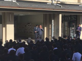 学校日誌始業式後の学活の時間に避難訓練を実施しました。今回は事前に開始時間などを予告せずに、集合場所も変更して昇降口としました。急な訓練にもかかわらず、生徒たちは落ち着いて避難できていました。