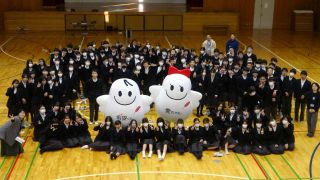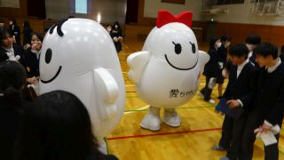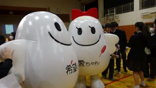 マスコットキャラクターの「愛ちゃん」と「希望くん」も来てくれており、生徒たちと交流していました。ご来校ありがとうございました。