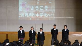 最初に生徒会本部役員が中学校生活について説明をしました。