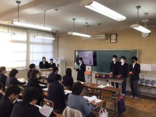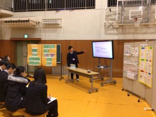 発表会の最初は2年生たちによる公開授業でした。どのグループも、これまでの探究を上手にまとめた見事な発表でした。よく頑張りましたね。