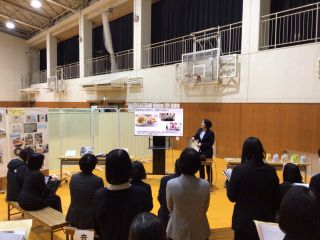 今日は、本校が3年間研究を重ねてきた「食に関する指導充実事業」について、研究発表会を開催しました。長岡京市教育委員会教育長 西村文則様をはじめ、長岡京市内、京都府内、そして全国からも多数の皆様にお越しいただきました。お寒い中のご来校ありがとうございました。