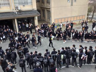 少し肌寒い朝となりましたが3年生たちは元気に登校しました。いよいよ卒業式の開式です。