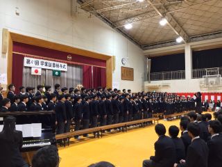 3年生の式歌、全校生徒の合唱で、会場内は感動いっぱいの空気に包まれました。