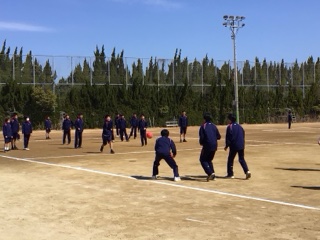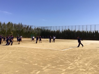 澄み切った青空の下、1年生の球技大会を開催しました。男女ともドッヂボールです。