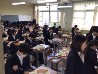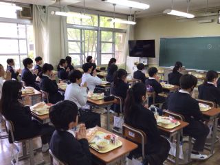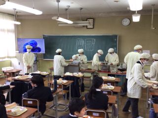 学校日誌1年生は今日から給食が始まりました。小学校でも当番を経験しているとはいえ、新しい校舎での当番は慣れるまでが大変ですね。今日は担任の先生から指示をうけながら、当番たちが懸命に配膳や配布をしていました。
