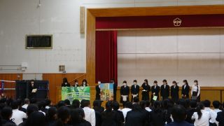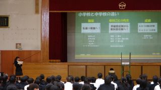 はじめに生徒会本部役員が自己紹介をして、中学校生活について説明してくれました。