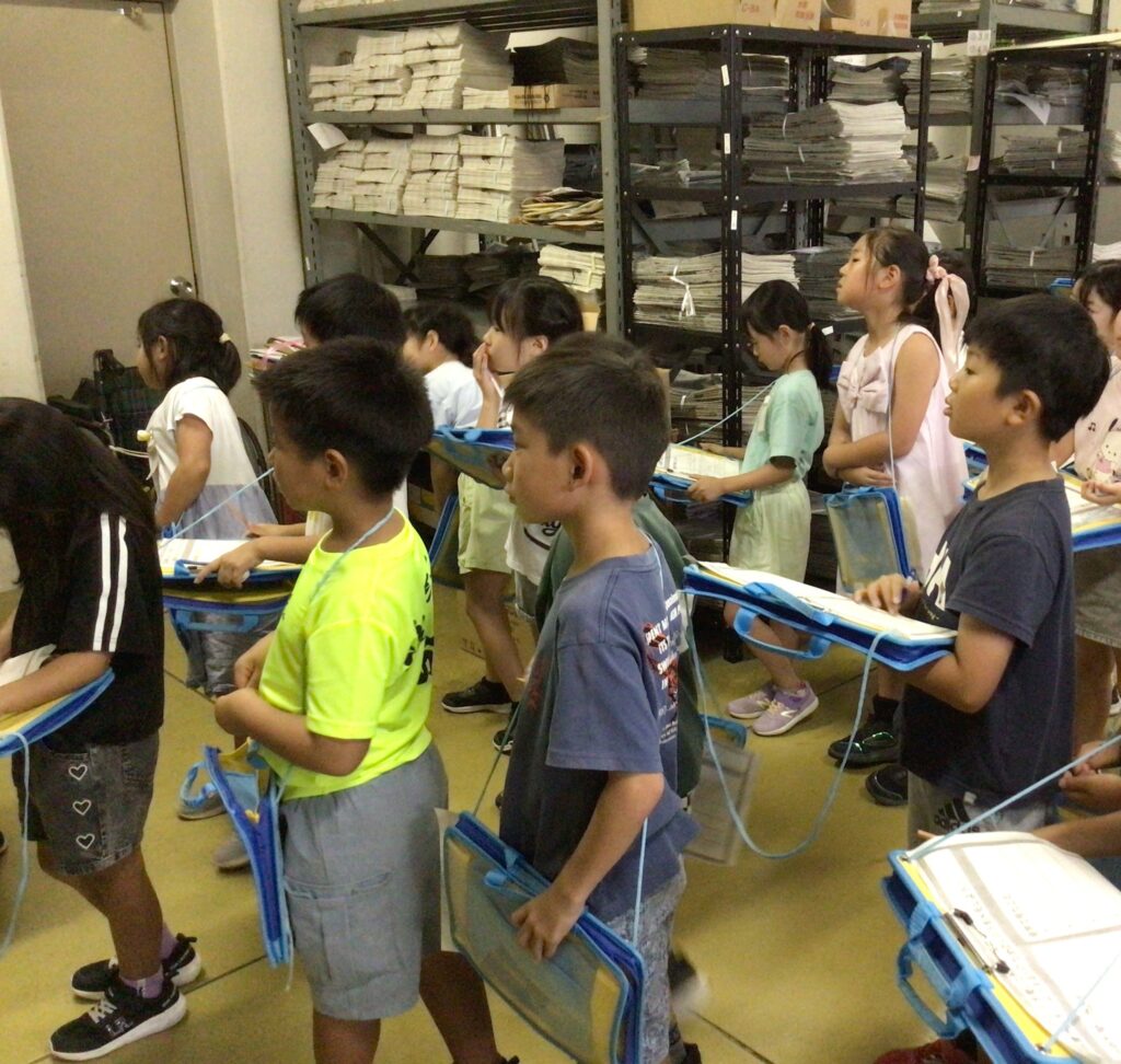 図書館へ行ったことのある人は多いと思います。たくさんの本、いろいろな世代の人…この日は「本を借りる」のではなく、「図書館について知る」という目的の2年生。図書館の方からていねいな説明を聞いたり、いつもは入ることのできない書庫を見せていただいたりして、とてもうれしそう。真剣な表情で話を聞き、熱心にメモを取っています。自ら意欲的に学ぶ姿勢、すてきです。