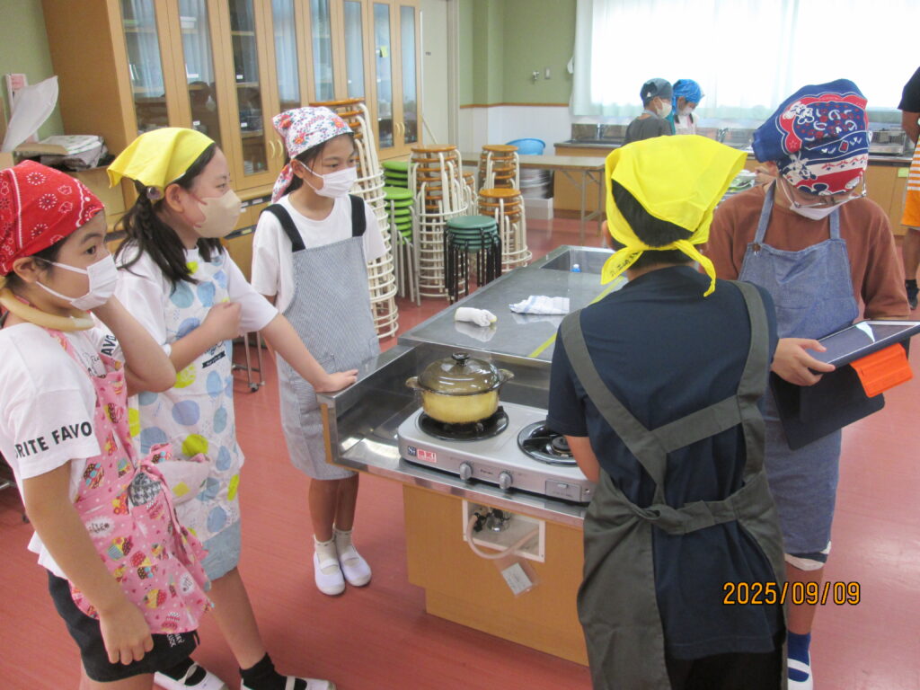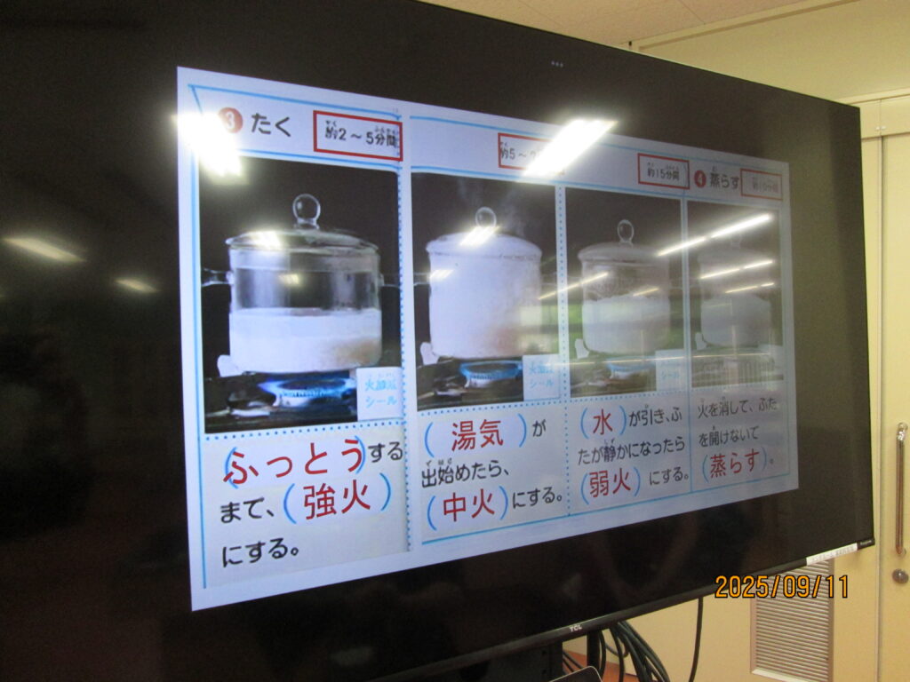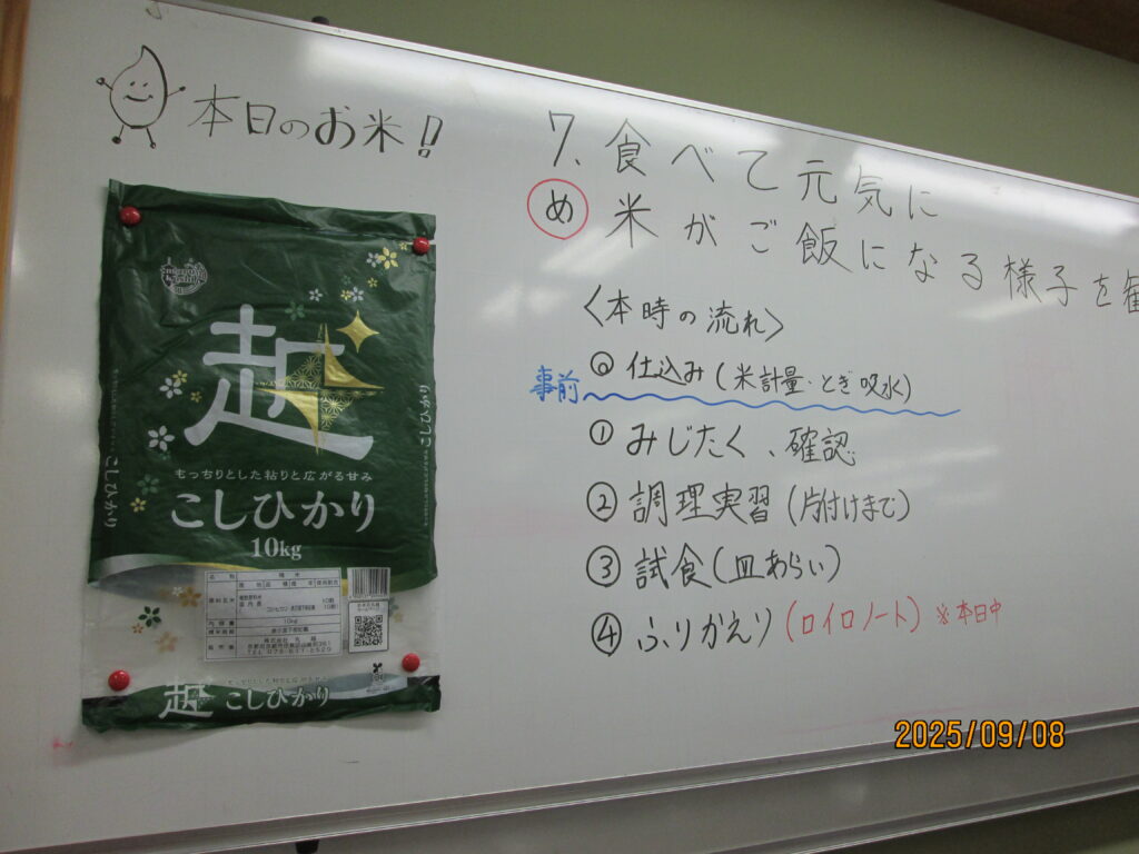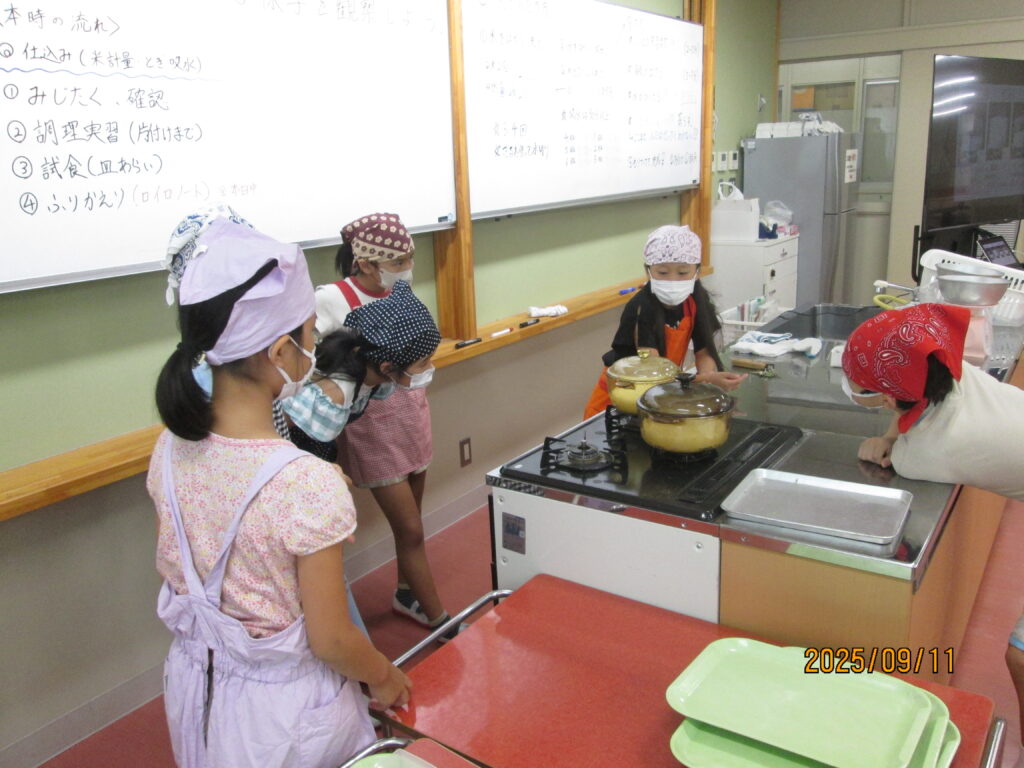 9月に入ってから、5年生の各クラスで調理実習がありました。作るのは(炊くのは?)「ご飯🍚」です。タイミングの合った3クラスを見学させてもらいました。