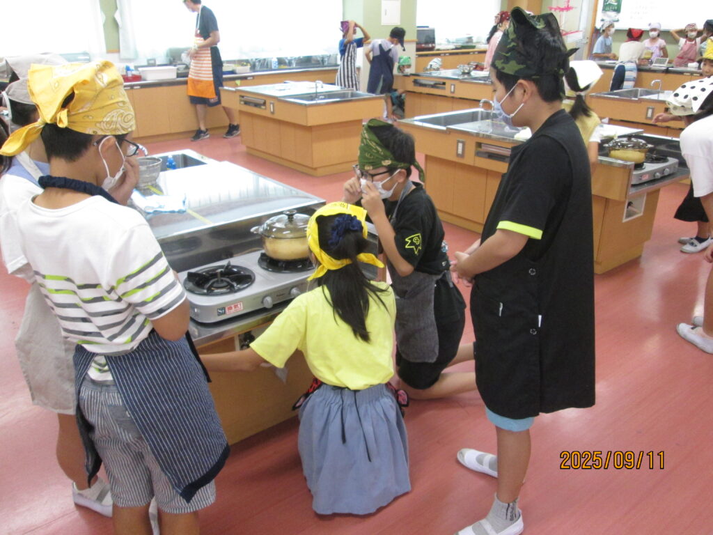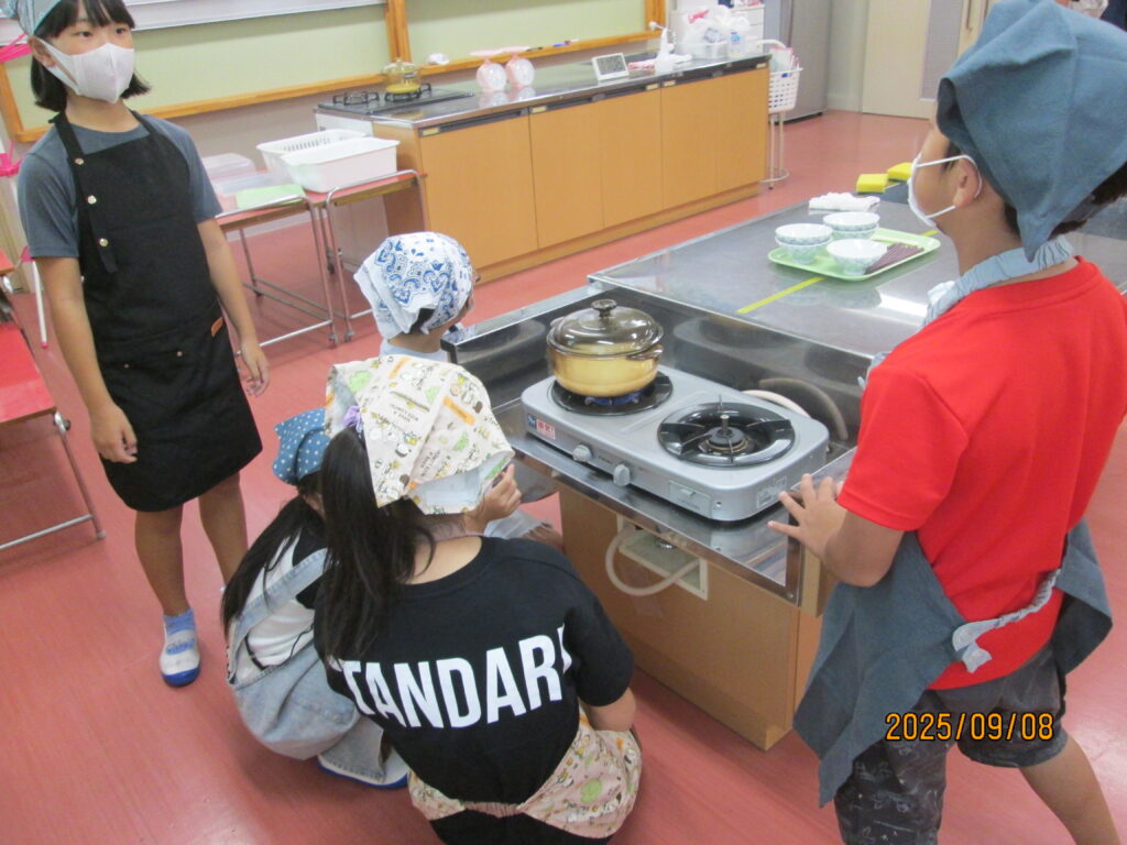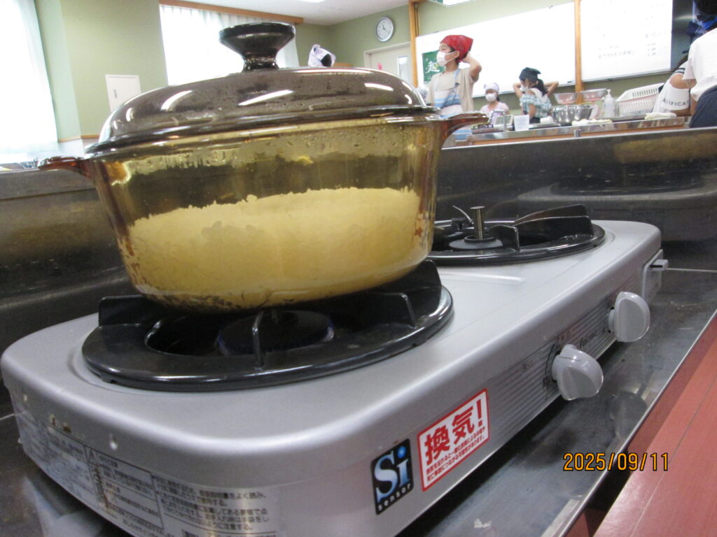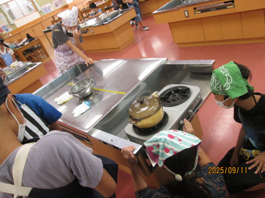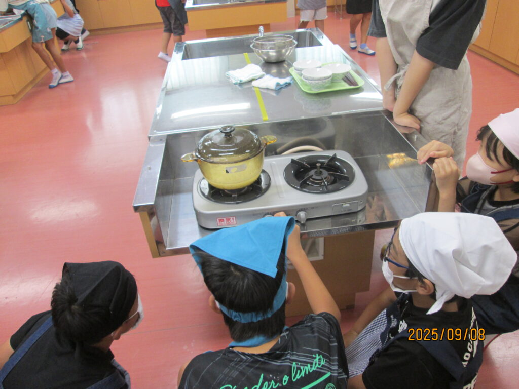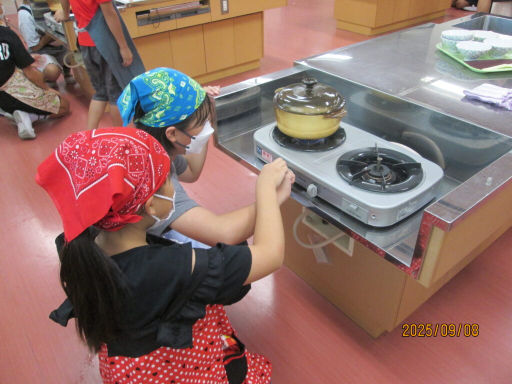 「炊飯器がどれだけ便利かよくわかるな…」と言っている子がいました。確かに、炊いたお米を入れてスイッチを押せば、炊飯器でもおいしいご飯が炊けますね。手間はかかりますが、お鍋でご飯を炊く経験もよかったのではないでしょうか。自分で作るとなんだかとーってもおいしいですよね。機会があれば、おうちでもやってみてください。