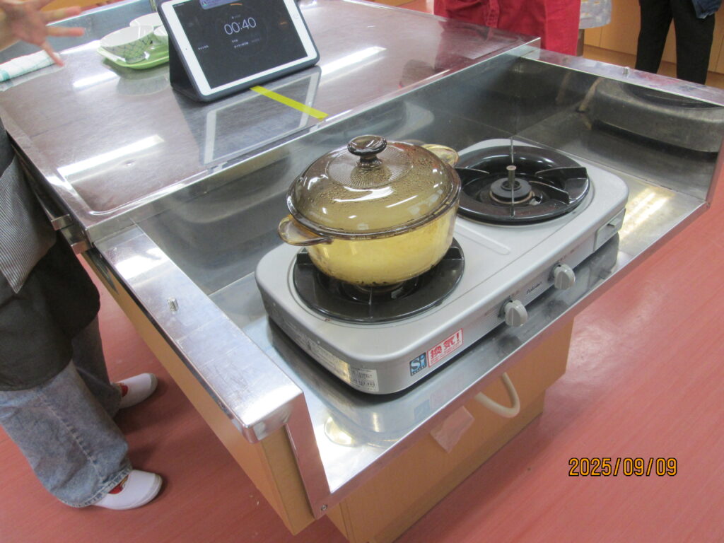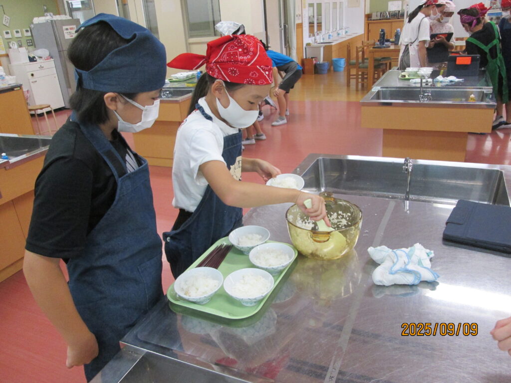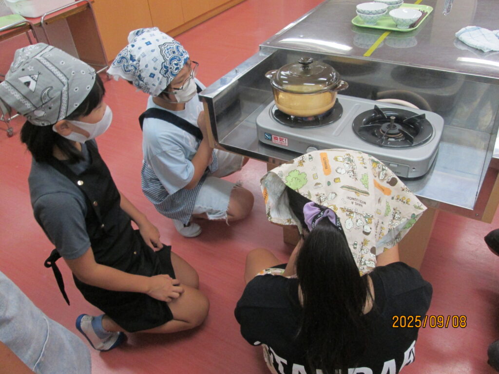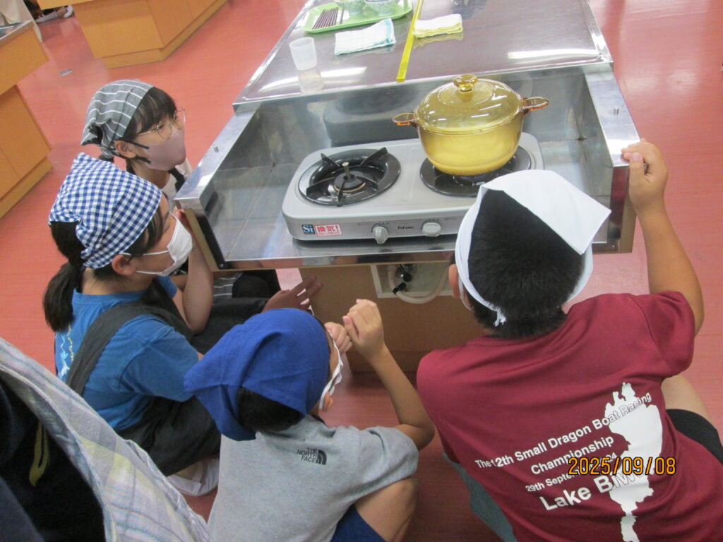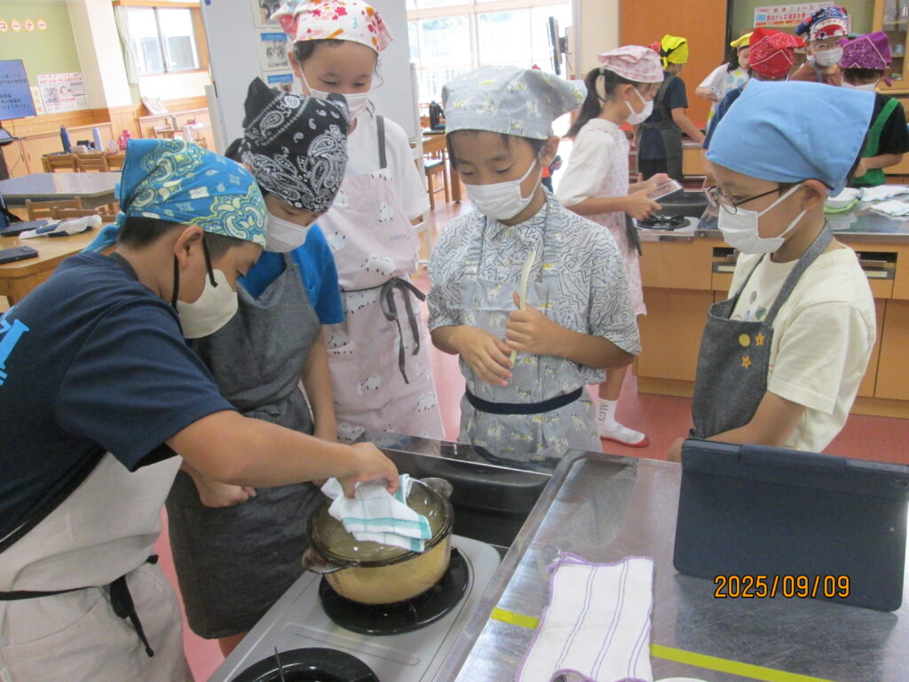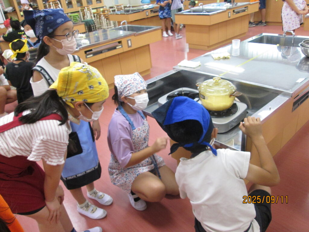 「炊飯器がどれだけ便利かよくわかるな…」と言っている子がいました。確かに、炊いたお米を入れてスイッチを押せば、炊飯器でもおいしいご飯が炊けますね。手間はかかりますが、お鍋でご飯を炊く経験もよかったのではないでしょうか。自分で作るとなんだかとーってもおいしいですよね。機会があれば、おうちでもやってみてください。