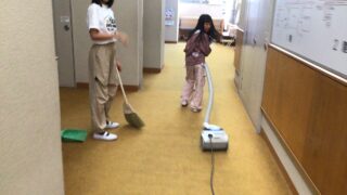 みんな元気に朝を迎え、朝の集いで今日の予定を確認しました。お世話になった施設をきれいにし、食事係は食事の準備をして、役割を果たしていました。