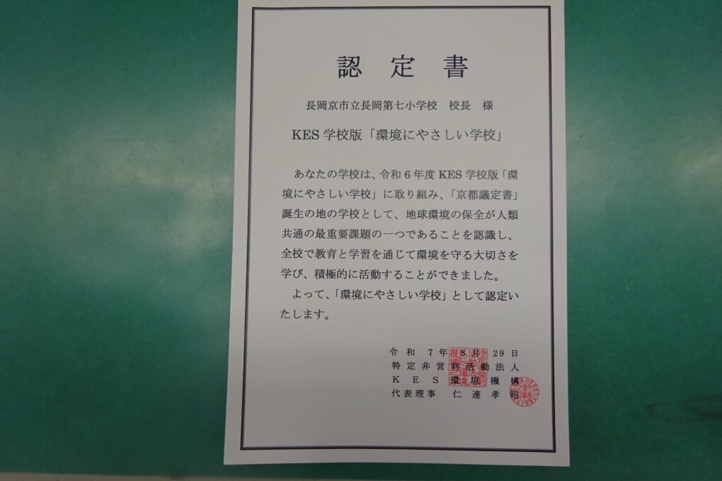 KES学校版「環境にやさしい学校」 R7 長七小トピックス Twitter Facebook はてブ Pocket LINE コピー 2025.09.27 【9月】本校の ①地域の環境問題の調査、研究 ②植物の栽培 ③電気使用量の削減、ごみ分別、水資源の活用等の取組が評価され、「環境にやさしい学校」に認定されました。今後も、環境を守る大切さを学習し、実践できる児童を育てていきたいと思います。 Post Views: 53