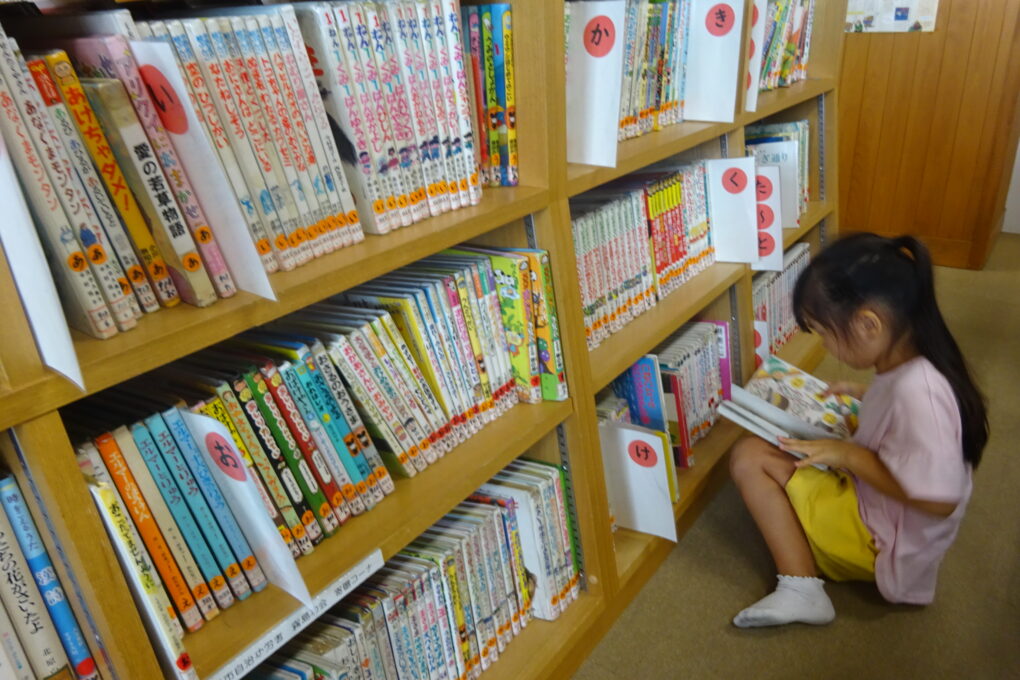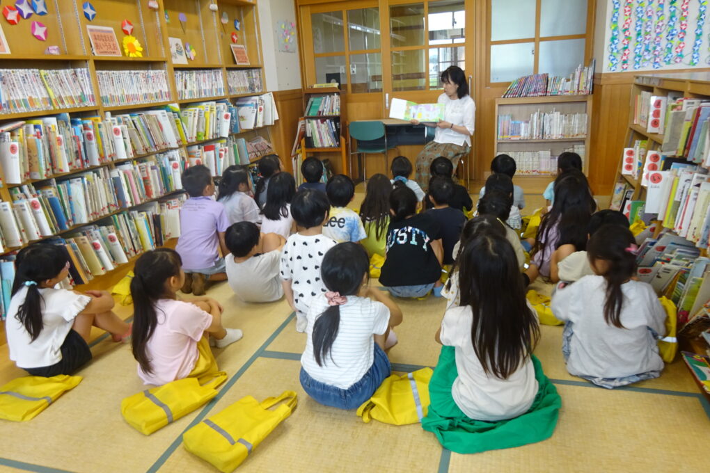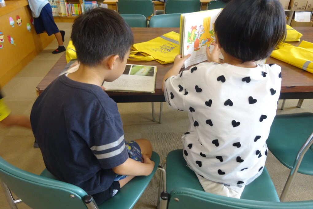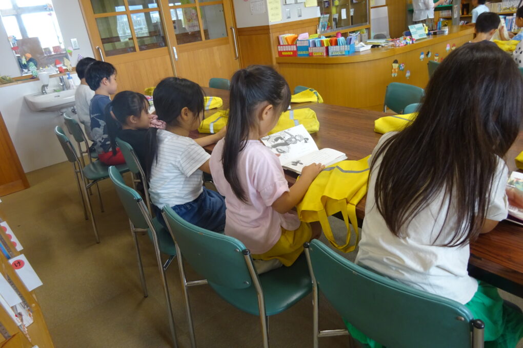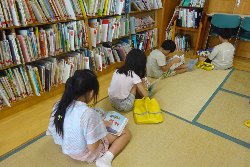 【9月】週に1回の図書の時間、子どもたちがとても楽しみにしている時間です。最初に、図書館司書の先生に読み聞かせをしてもらい、借りていた本を返します。また、1週間借りる本を選んだら、自由に読書の時間です。1年生もこの流れが身に付き、貸し出しカードには自分で借りる本のタイトルを書くことができるようにもなりました。