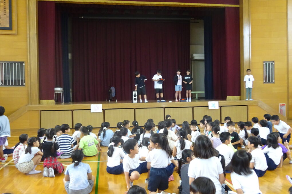 【10月1日】児童会本部が、何かみんなで楽しめることはないかと、〇×クイズを企画しました。今日は、低学年、明日が高学年の日。中間休みのチャイムが鳴ると、たくさんの子どもたちが体育館に集まってきました。クイズは、七小にちなんで7問。正解が発表されると、飛び跳ねて喜ぶ姿も。児童会本部のみなさん、楽しい時間をありがとう。