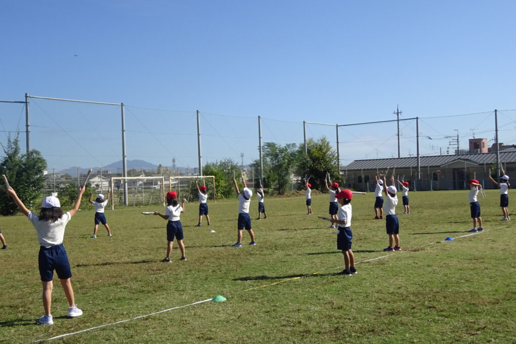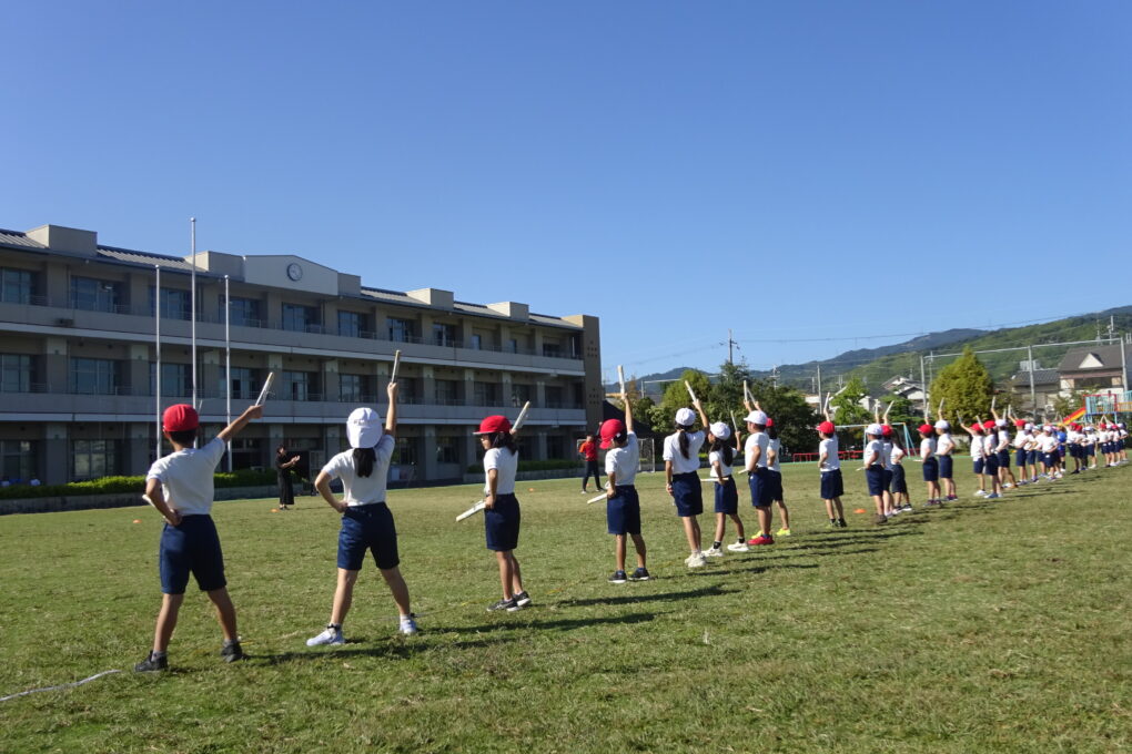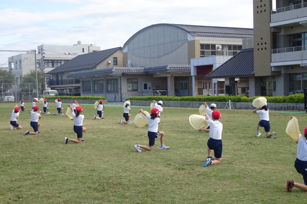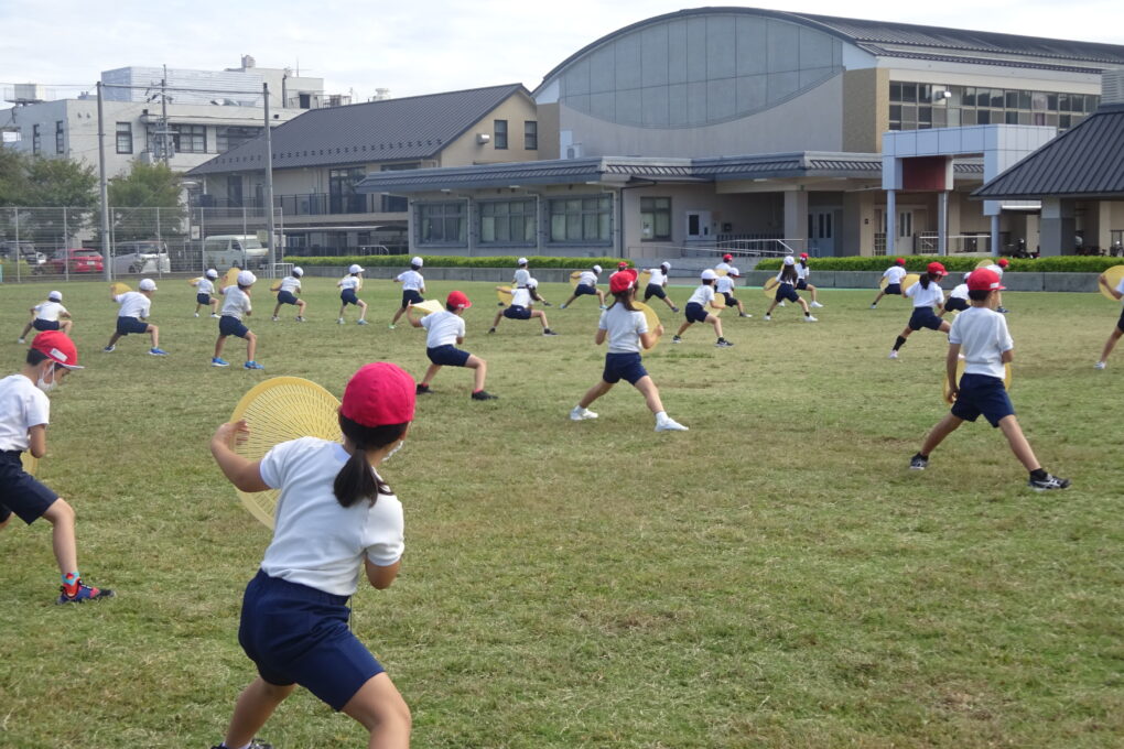 【10月10日】今週に入り、外に出て練習することが増えました。2年生は、バチを持っていますが、まだこれは新聞紙を丸めたもの。3年生は花笠をしますが、まだ花が付いていません。本番までに壊れたら困るからというのもありますが、子どもたちのモチベーションを徐々に上げていくという担任たちのねらいもあります。さあ、あと1週間。昨年度と同様、お天気の心配が出てきましたが、子どもたちはやる気満々です!!