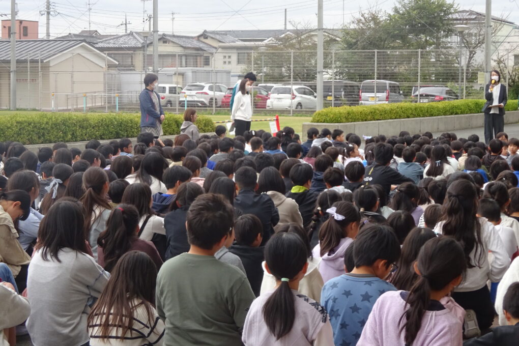 【11月5日】不審者対応の避難訓練を行いました。教職員は、先月警察のスクールサポーターさんにお越しいただき研修を受けていたのですが、実際に子どもたちがいる場面での動きを確認し、子どもたちも緊急の場合の放送や避難の仕方を担任と一緒に確認しました。