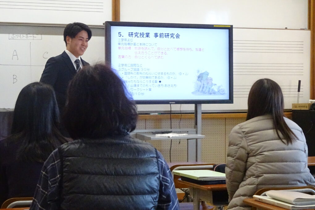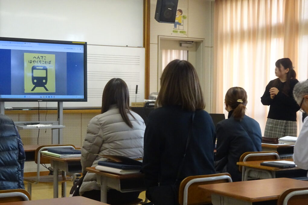 【1月8日】子どもたちが帰った後は、職員で研修を行いました。今回は、2年生の国語科の学習「お手紙」の中で、子どもたちの「言葉の力」をどのように高めていくか研究を行いました。乙訓教育局の指導主事様にも、「お手紙」の物語としての魅力を教えていただきながら、授業の進め方を考えました。1月末にはその2年生の「お手紙」の授業を、教職員全員で参観し、またそこから研究を深めていく予定です。